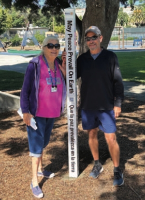 President Sheila Moran & Past-President Frank Silveira with the newly installed Peace Pole